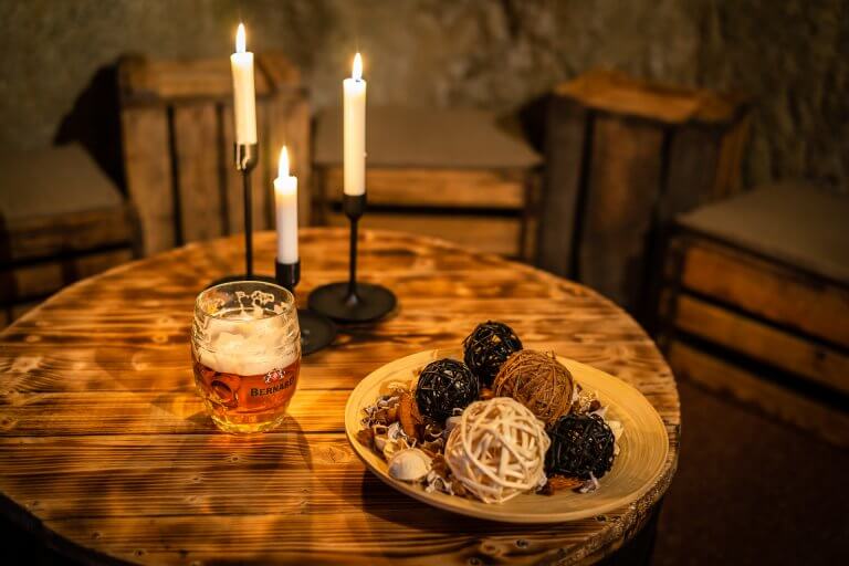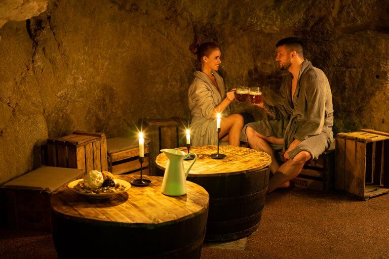 Souhlasíme s pravdou českého spisovatele V.Párala, a proto Vás zveme do pivních lázní ve Znojmě. Je pro vás připravena jedinečná kombinace regeneračních a očistných účinků pivní lázně. Procedura obsahuje koupel v pivní lázni, neomezenou degustaci ležáku Bernard a občerstvení v podobě bohatého selského prkénka (sýry, klobásy a další pochoutky, které se hodí ke konzumaci piva). Po pivní koupeli je možné využít prohřívací kabinu nebo relaxovat na prostorném stylovém lůžku. Prožitek z návštěvy pivních lázní je umocněn příjemným a romantickým prostředím znojemského podzemí.